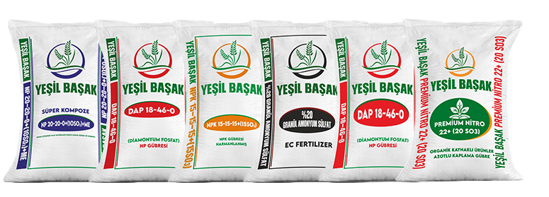 Ürettiğimiz ve ithal ettiğimiz tüm mineral ve organomineral gübreleri, Yeşil Başak markası ile pazara sunmaktayız.